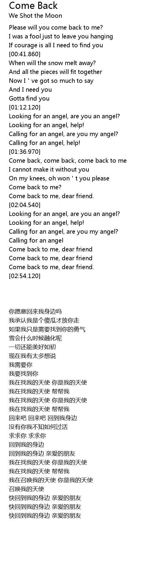 | [02:26.120] | Calling for an angel, are you my angel? |