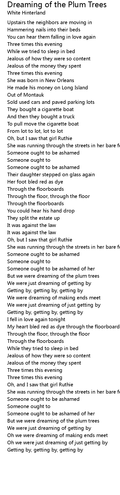 But we were dreaming of the plum trees |