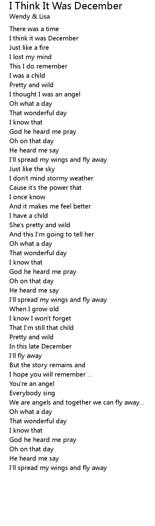 | Song | I Think It Was December |