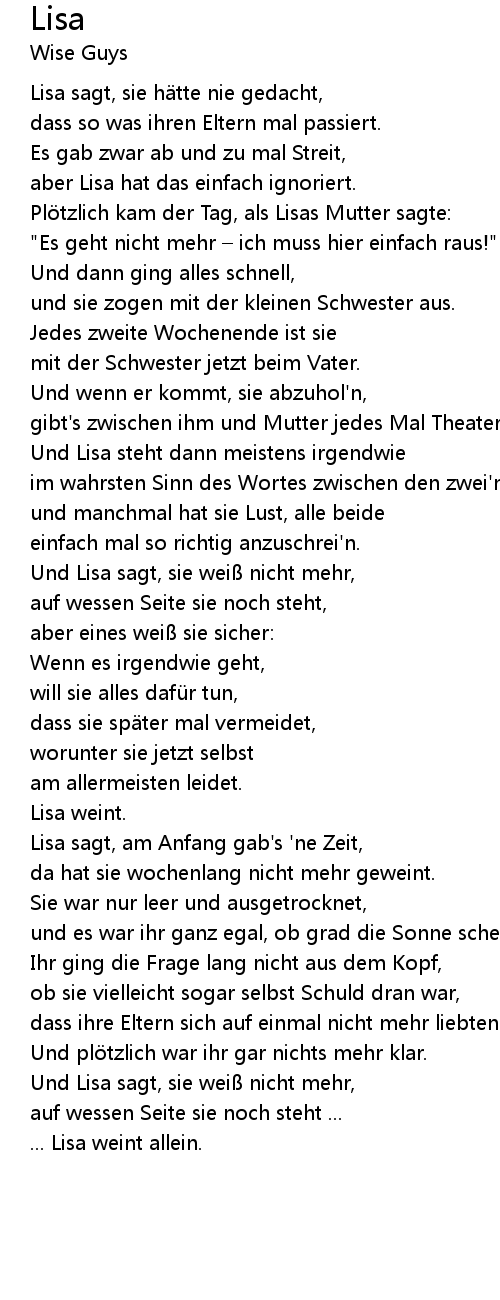 | Und Lisa sagt, sie wei nicht mehr, | |