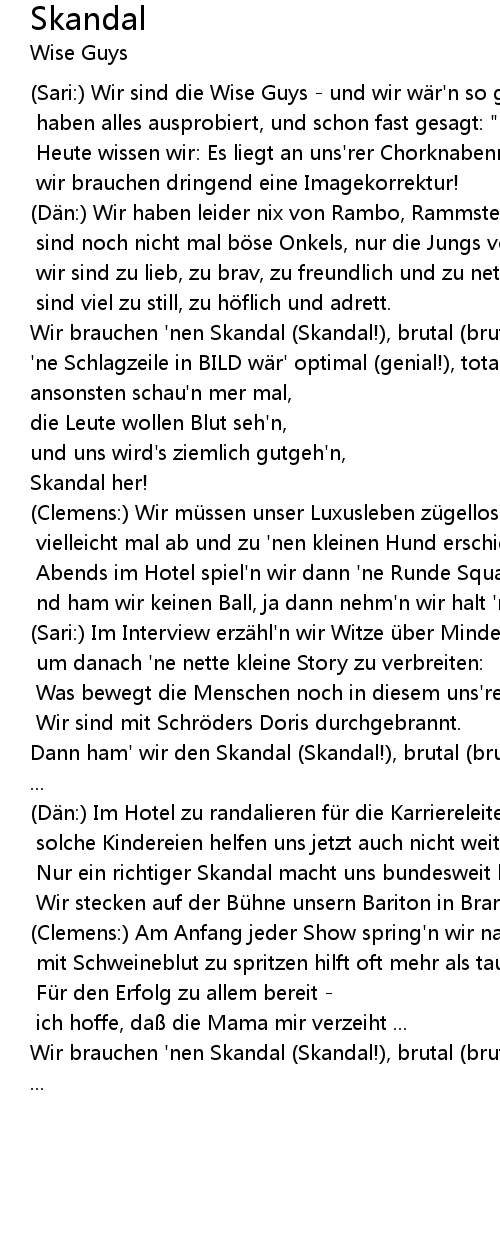 | Wir brauchen ' nen Skandal Skandal!, brutal brutal!, | |