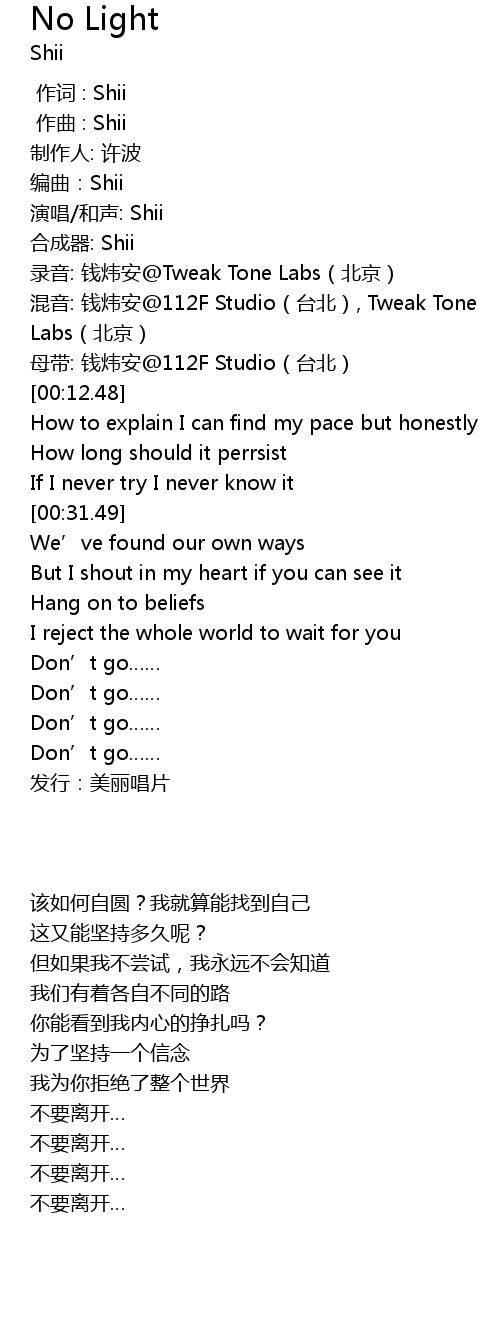 | [03:57.921] | 混音: 钱炜安@112F Studio(台北), Tweak Tone Labs(北京) |