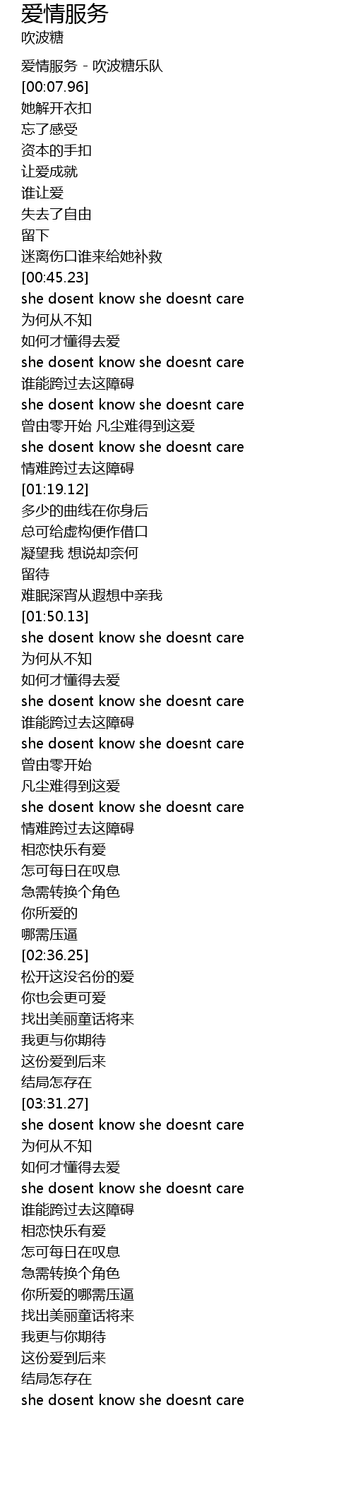 | [00:01.02] | 爱情服务 - 吹波糖乐队 |