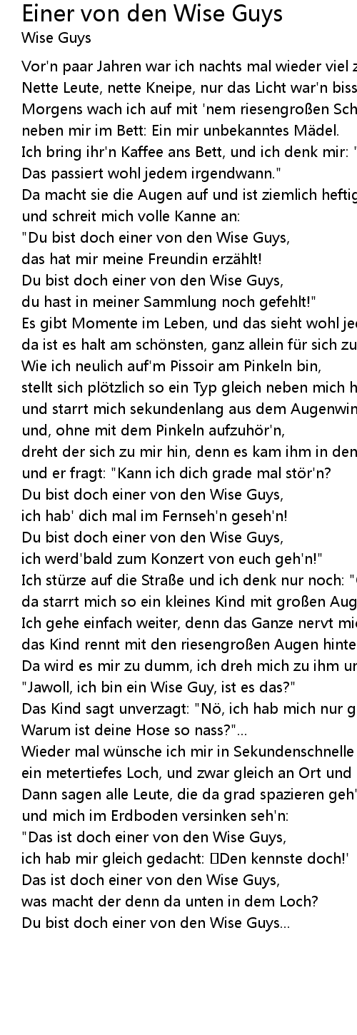 | " Du bist doch einer von den Wise Guys, | |