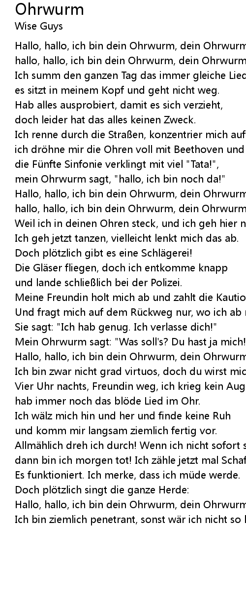 | hallo, hallo, ich bin dein Ohrwurm, dein Ohrwurm. | |