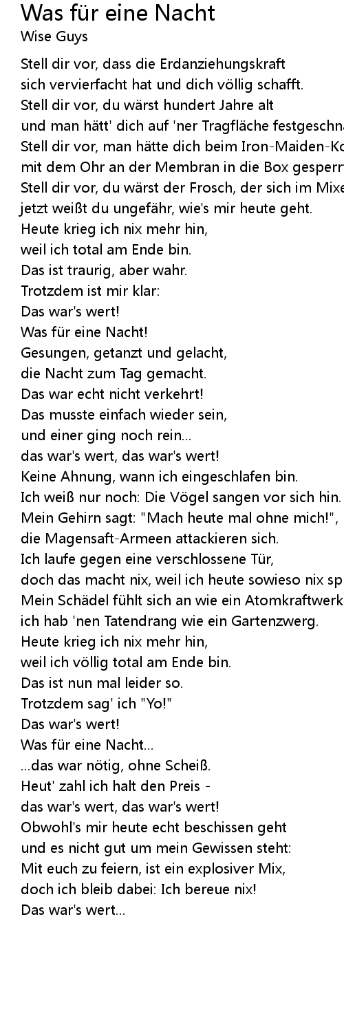 | Was für eine Nacht... | |