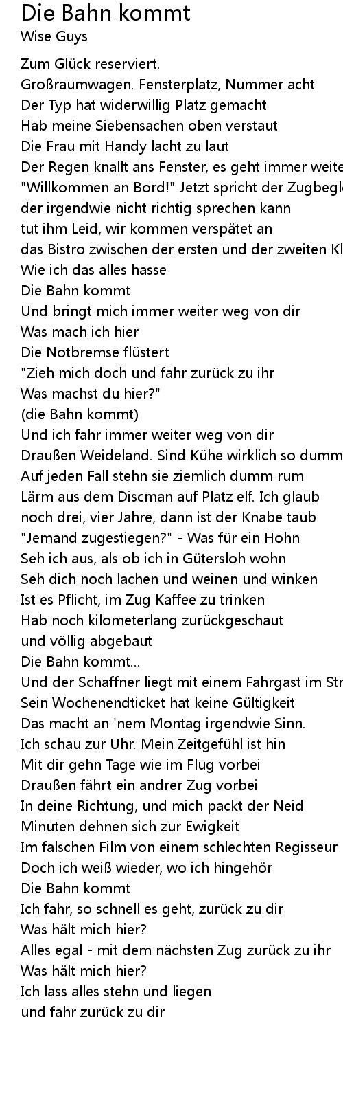 | Alles egal mit dem n chsten Zug zurü ck zu ihr | |