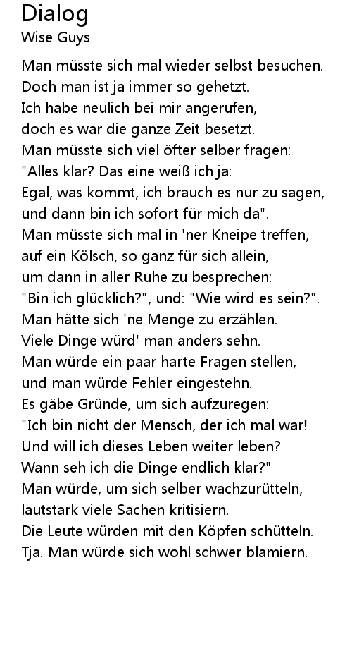 | Man mü sste sich mal wieder selbst besuchen. | |