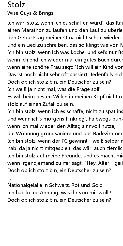 | Doch ob ich stolz bin, ein Deutscher zu sein? | |