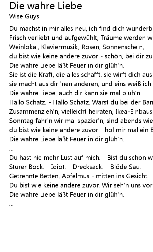 | Die wahre Liebe l t Feuer in dir glü h' n. | |