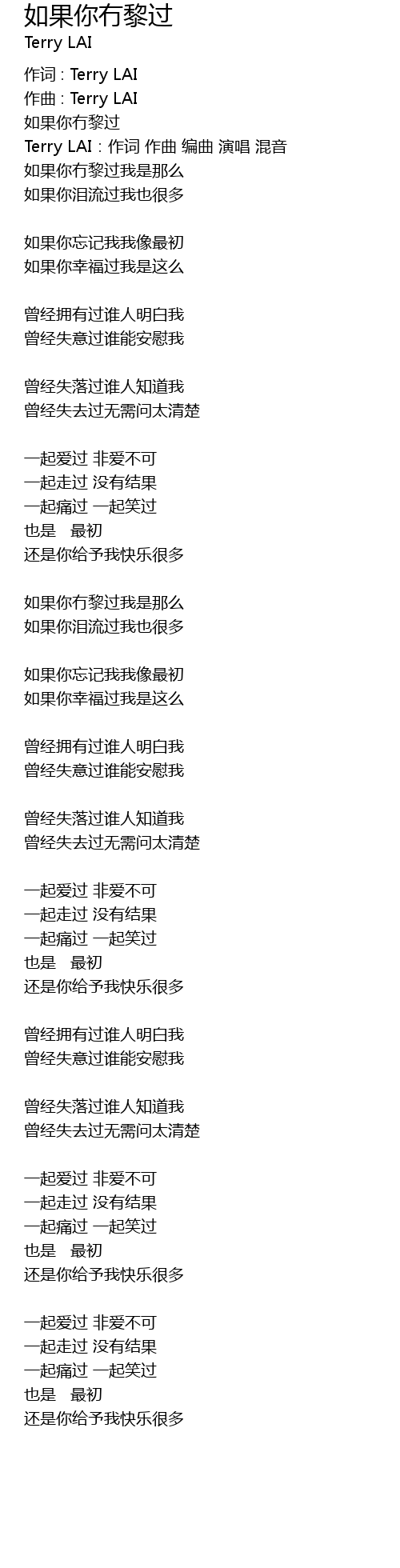 | Terry LAI:作词 作曲 编曲 演唱 混音 | |