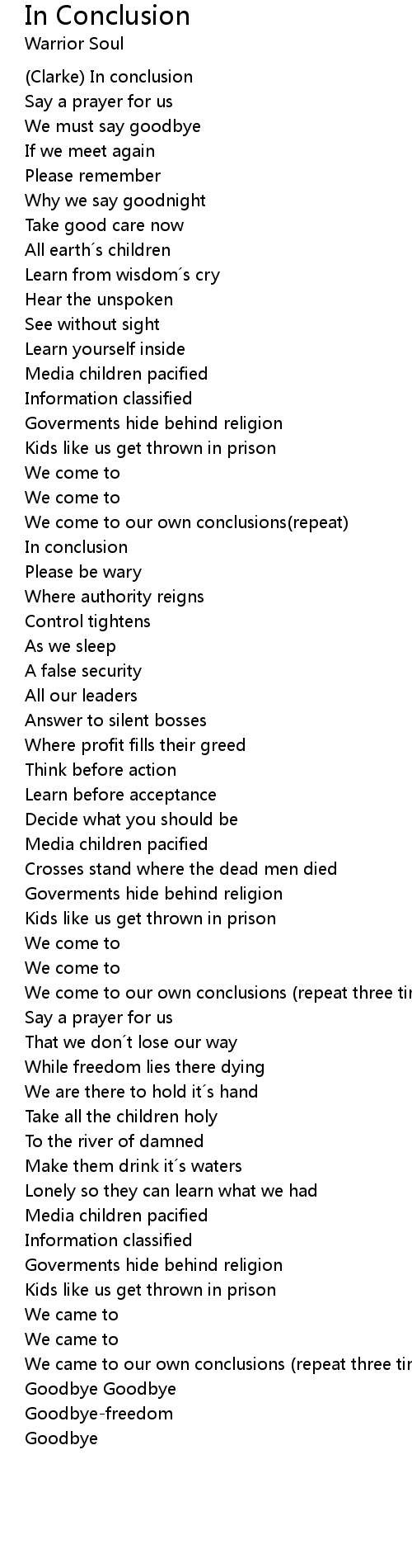 | Song | In Conclusion |