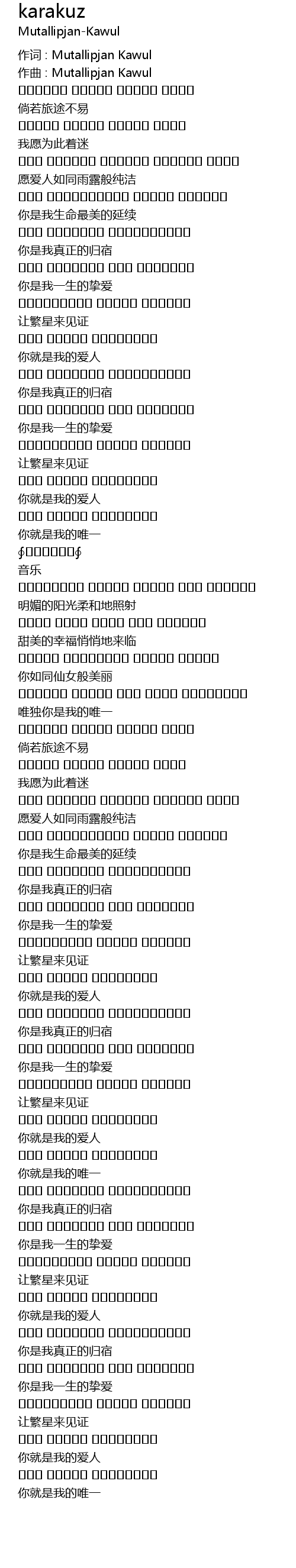| 作词 : Mutallipjan Kawul | |