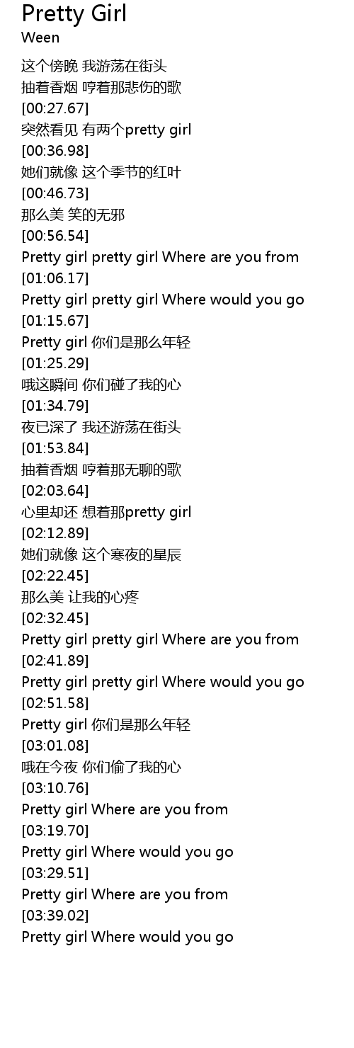 | [02:37.26] | Pretty girl pretty girl Where are you from |