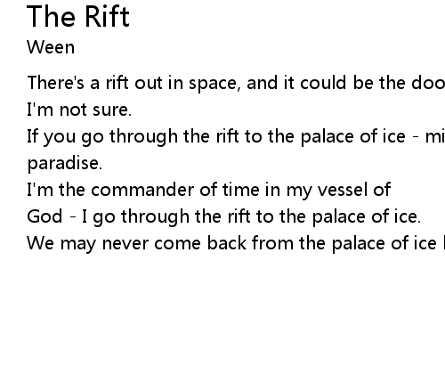 | If you go through the rift to the palace of ice - might it be nice - is it, paradise. | |