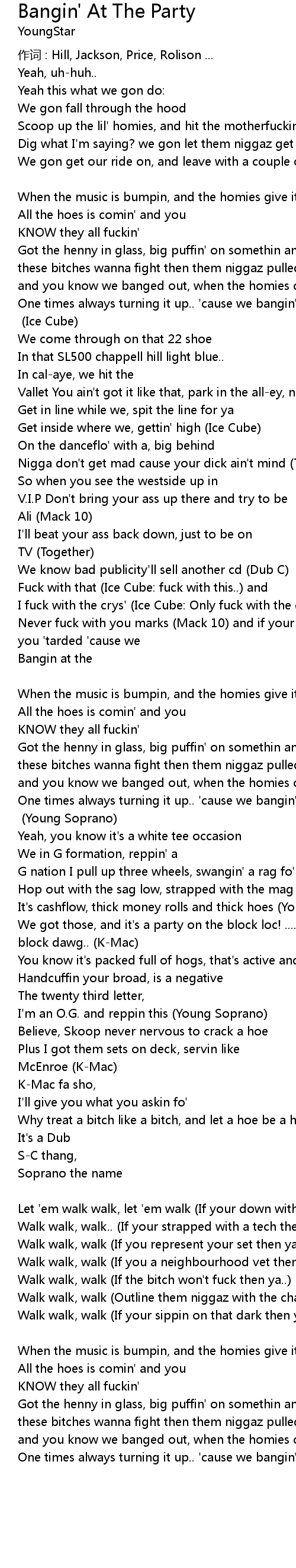 | One times always turning it up.. ' cause we bangin' at the party! Verse 1: Ice Cube, WC, Mack 10 Ice Cube | |