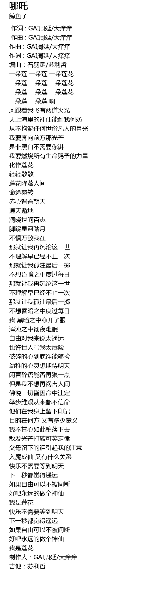 | [00:00.000] | 作词 : GAI周延/大痒痒 |