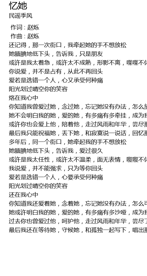 | [01:22.791] | 她不会明白我的她,爱的她,有多痛有多牵挂,成为我心头的伤疤 |