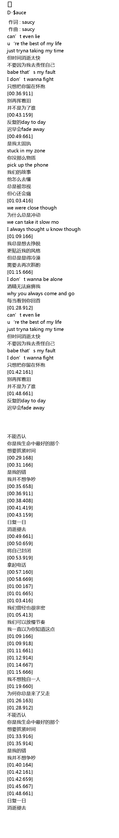 | [00:00.000] | 作词 : saucy |