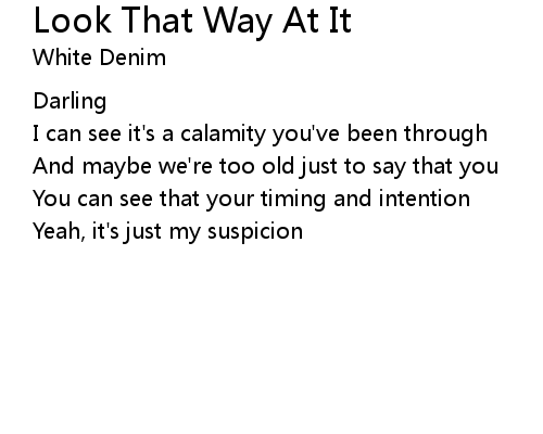 | Song | Look That Way At It |