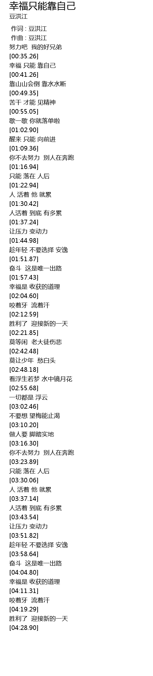 | [00:35.77] | xìng fú zhǐ néng kào zì jǐ |