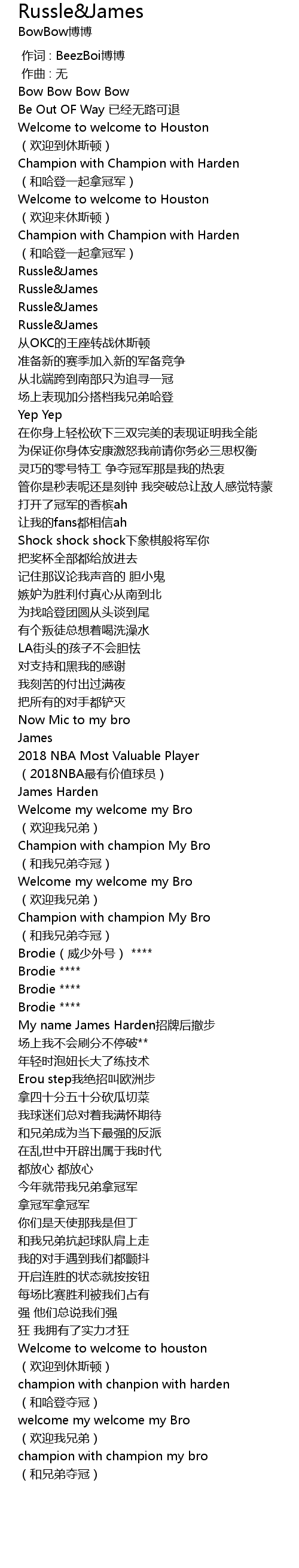 | [00:42.057] | 场上表现加分搭档我兄弟哈登 |