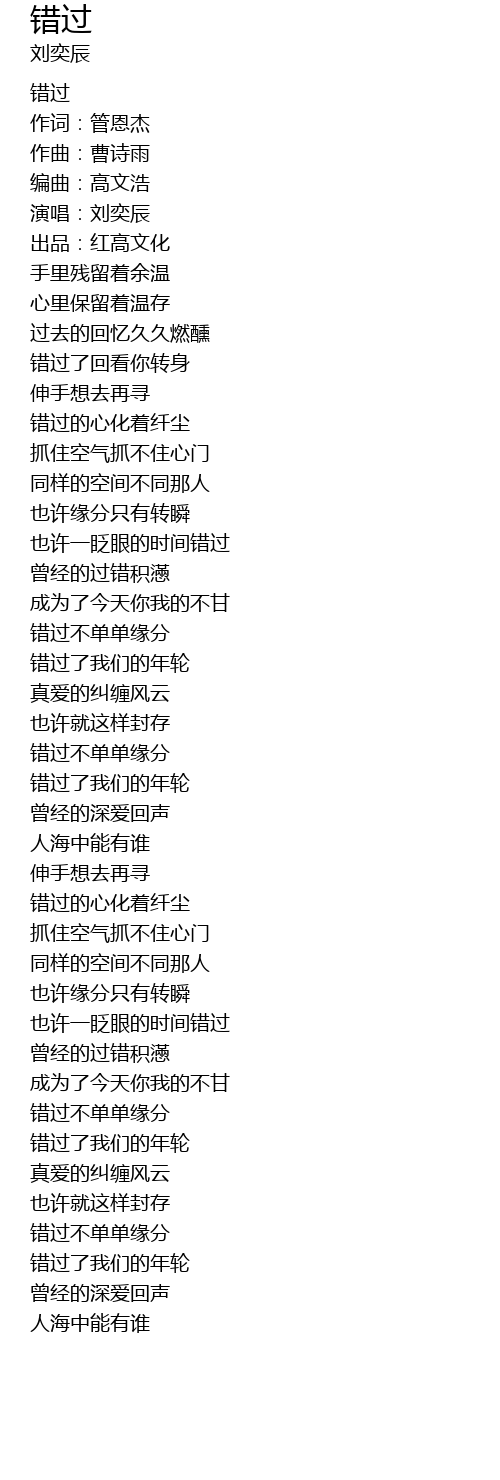| [00:35.54] | cuò guò le huí kàn nǐ zhuǎn shēn |