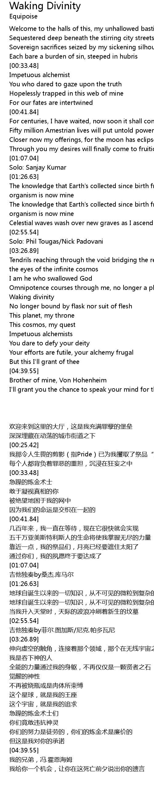 | [03:57.48] | Tendrils reaching through the void bridging the realm betwixt gates of the eyes of the infinite cosmos |