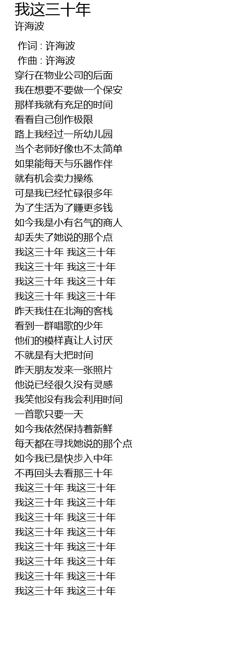 | [00:54.77] | wǒ zhè sān shí nián wǒ zhè sān shí nián |