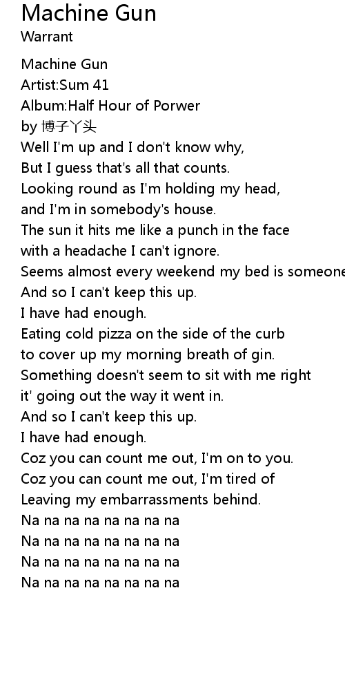 | [00:46.43] | Eating cold pizza on the side of the curb |