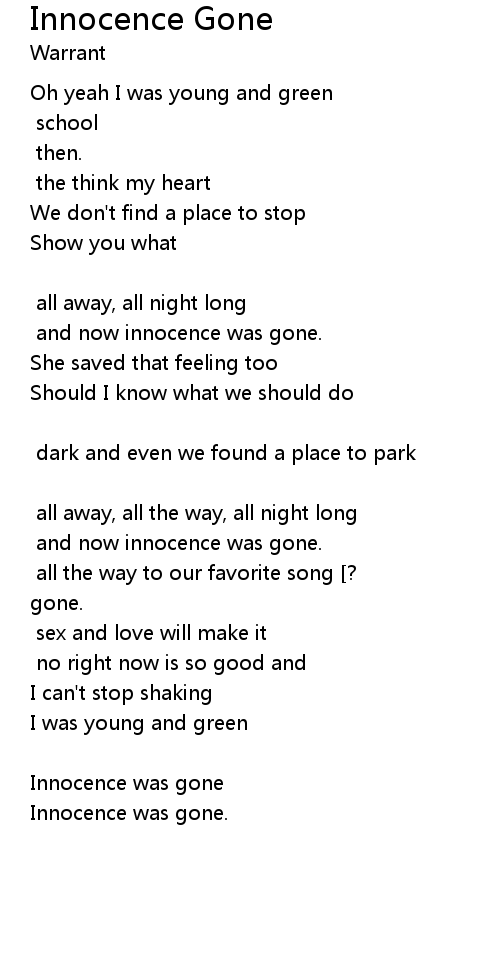 Now we [?] all the way to our favorite song [?] broke that our innocence was gone. |