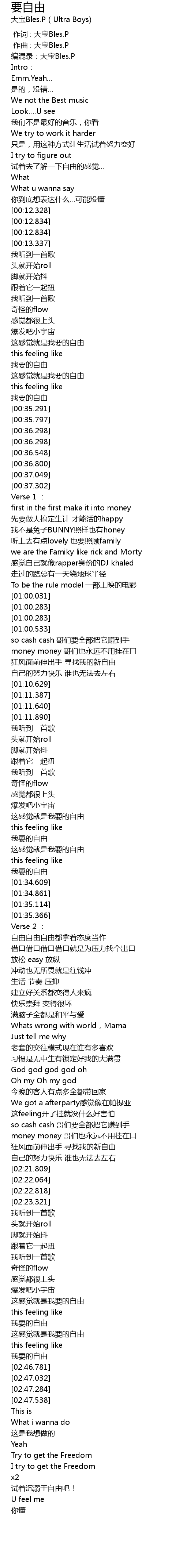 | [00:00.000] | 作词 : 大宝Bles.P |
