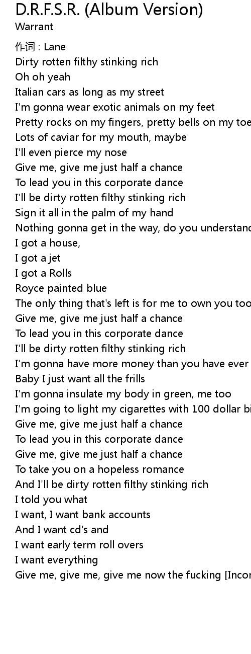 | And I'll be dirty rotten filthy stinking rich | |
