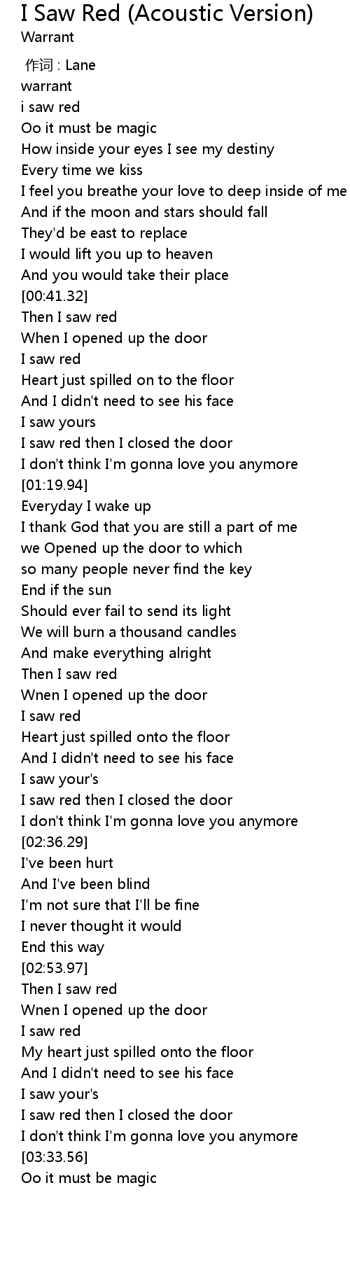 | [00:41.81] | Then I saw red |