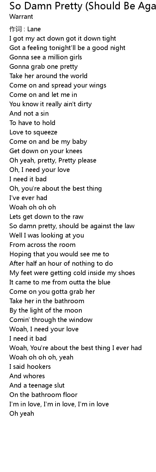| Song | So Damn Pretty (Should Be Against The Law) |