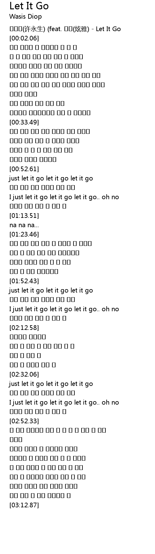 | [00:00.08] | 허영생(许永生) (feat. 현아(炫雅) - Let It Go |