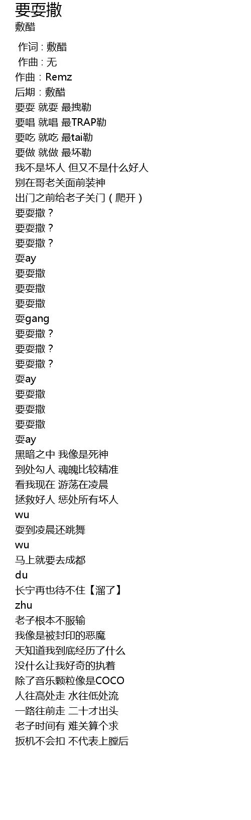 | [00:15.681] | 要耍 就耍 最拽勒 |