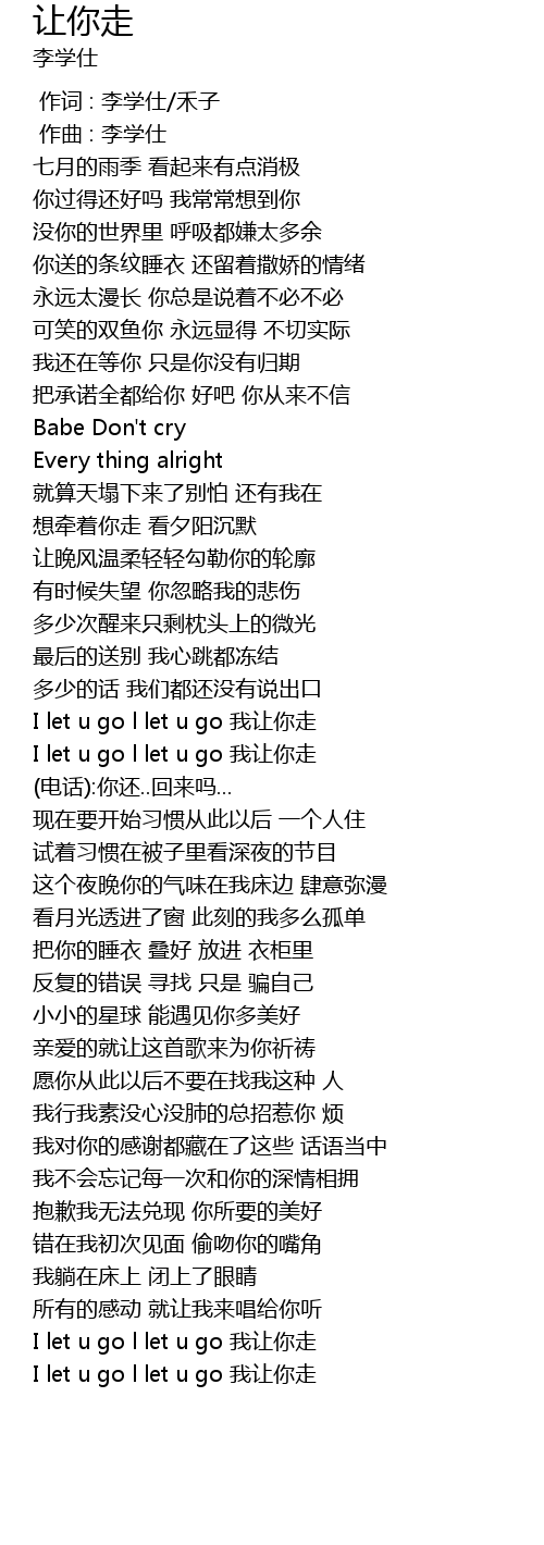 | [02:46.95] | I let u go l let u go 我让你走 |