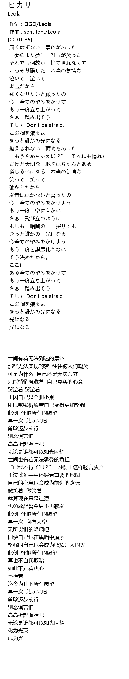 | [01:36.71] | 道しるべになる 本当の気持ち |