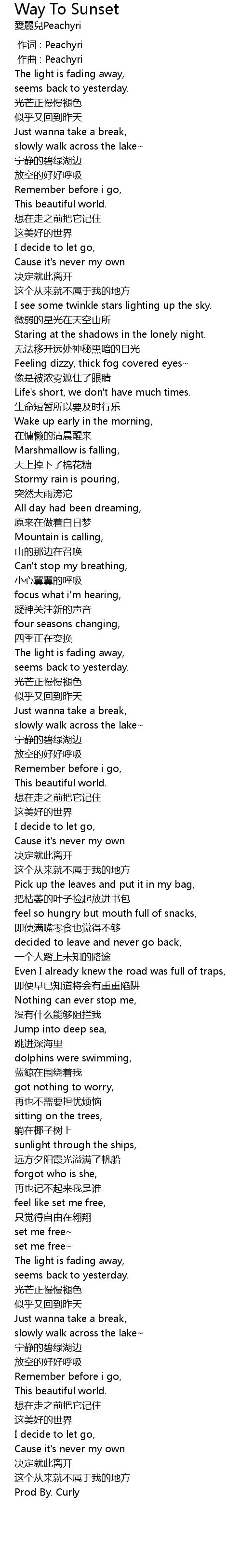 | [00:18.122] | guāng máng zhèng màn màn tuì shǎi |