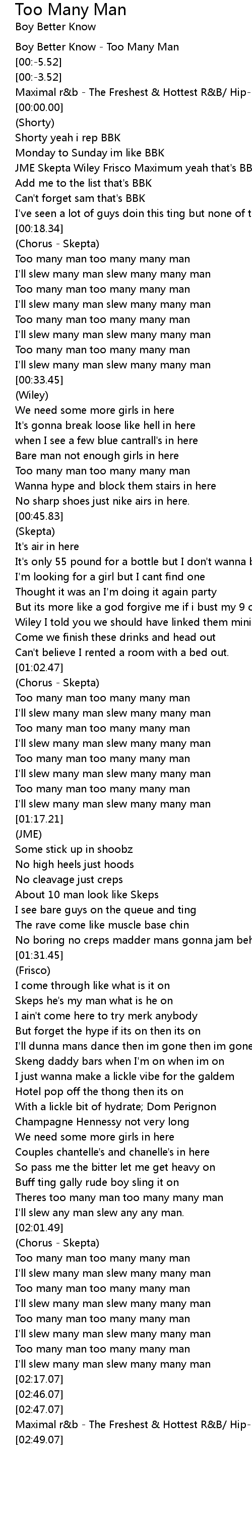 Boy Better Know - Too Many Man |