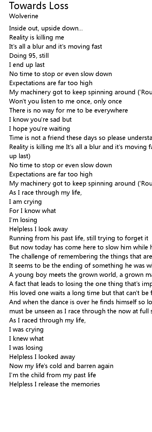 Time is not a friend these days so please understand! (Inside out, upside down Reality is killing me It's all a blur and it's moving fast Doing 95, still I end up last) |