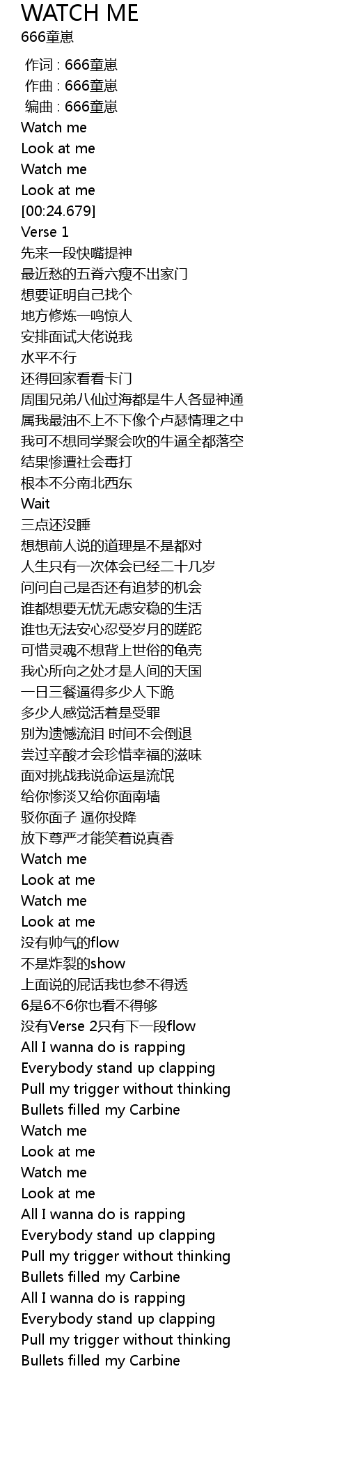 | [00:00.000] | 作词 : 666童崽 |