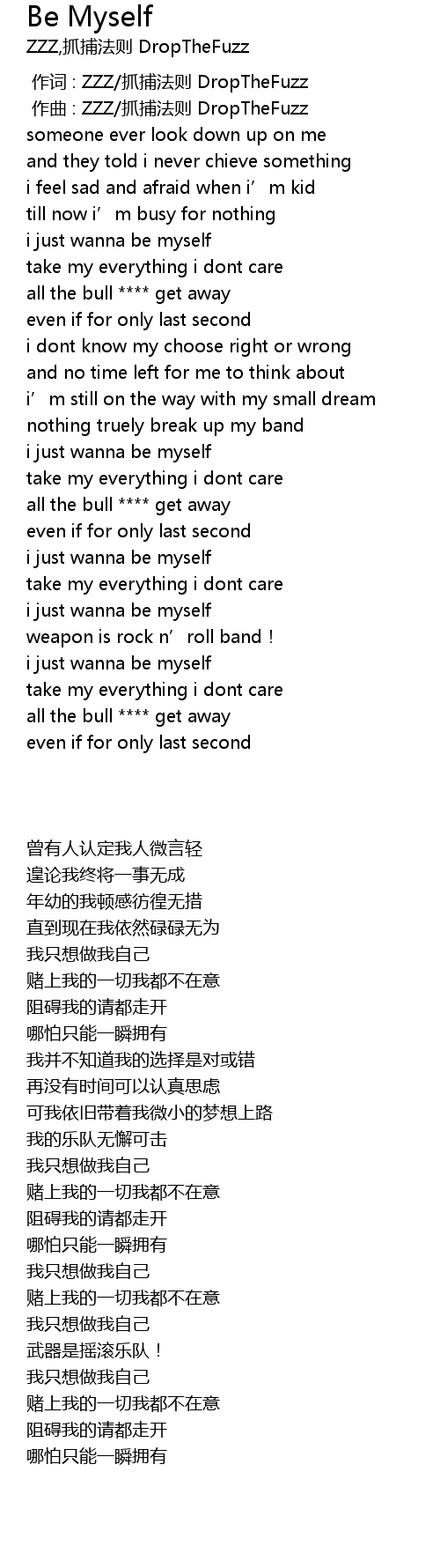 | [00:01.000] | zuo qu : ZZZ zhua bu fa ze DropTheFuzz |