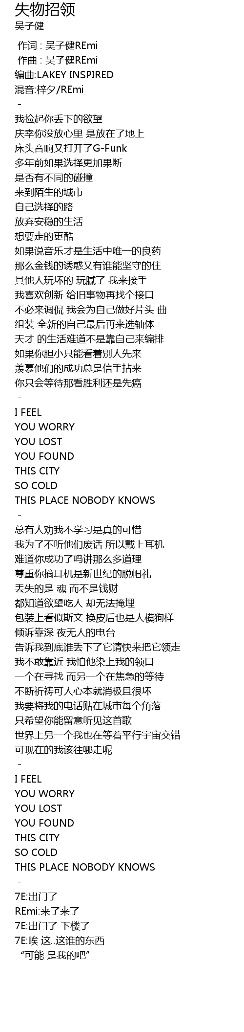 | [02:07.483] | 告诉我到底谁丢下了它请快来把它领走 |