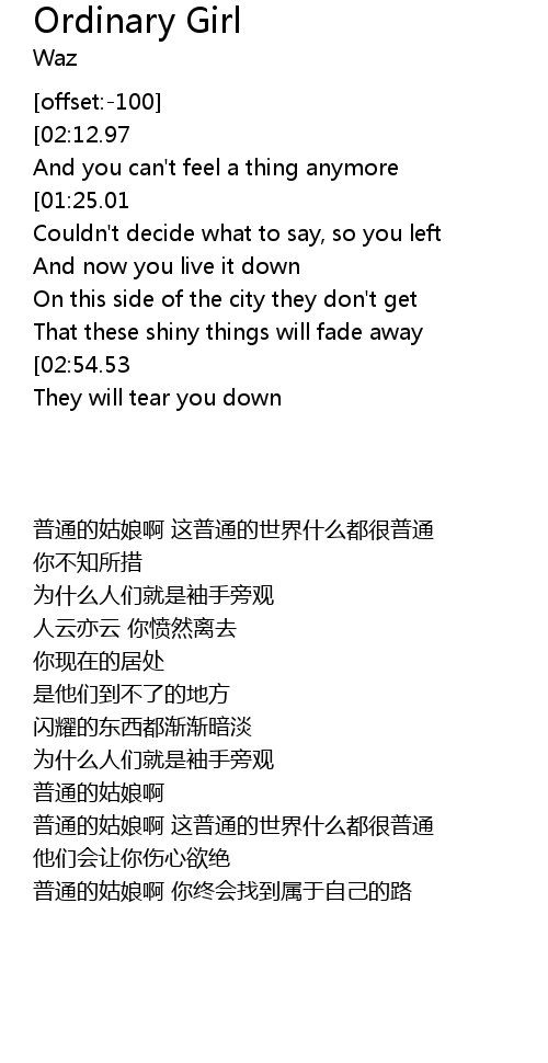 | [01:46.40][02:54.53] | Ordinary Girl you'll find your way |