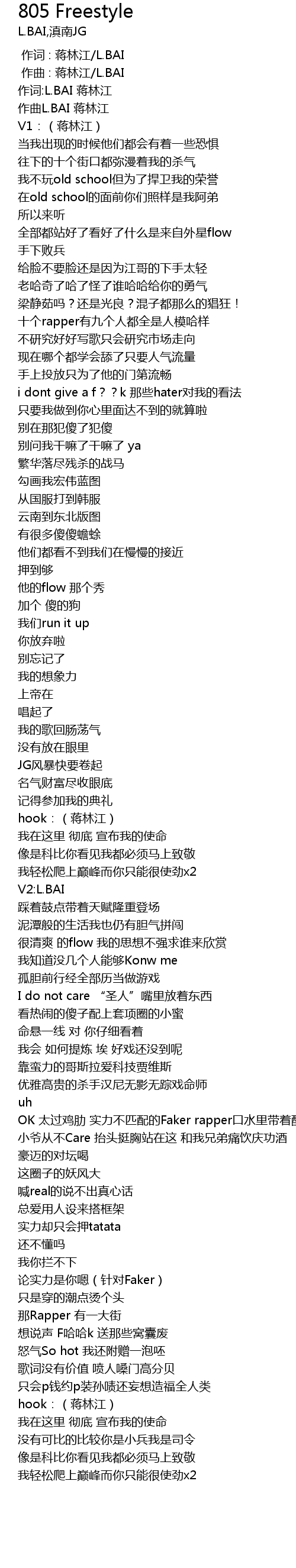 | [02:25.32] | OK 太过鸡肋 实力不匹配的Faker rapper口水里带着酸味 |