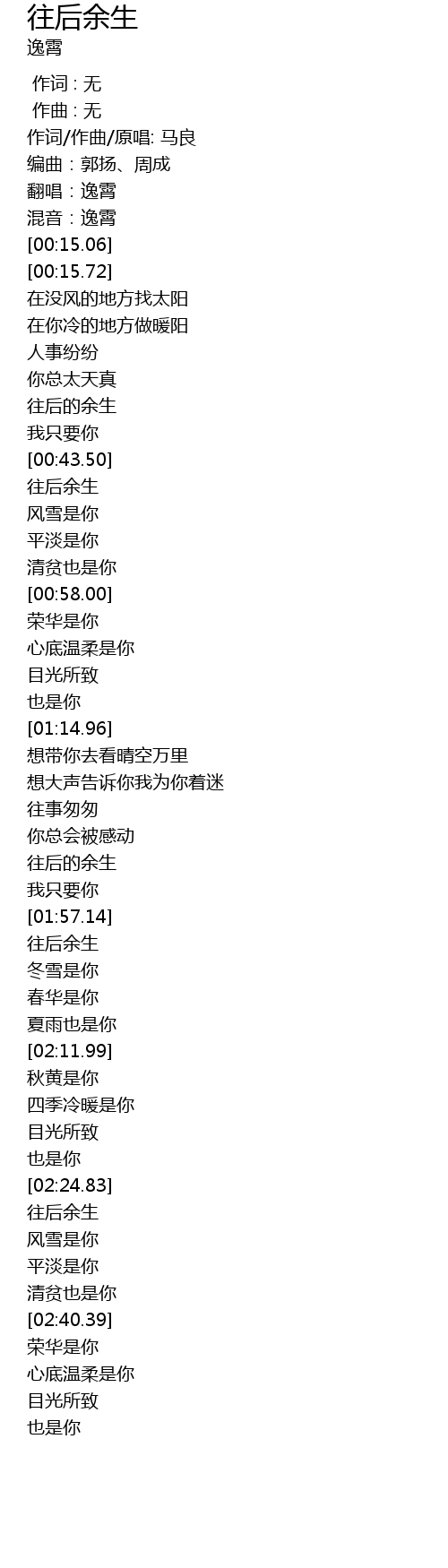 | [02:26.23] | 往后余生 |