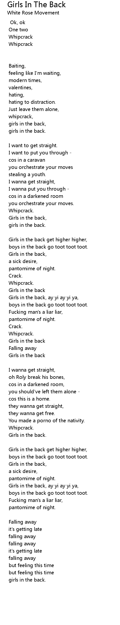 Girls In The Back Lyrics