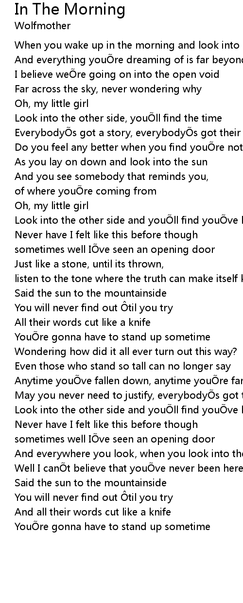 | [00:13.09] | When you wake up in the morning and look into her eyes |